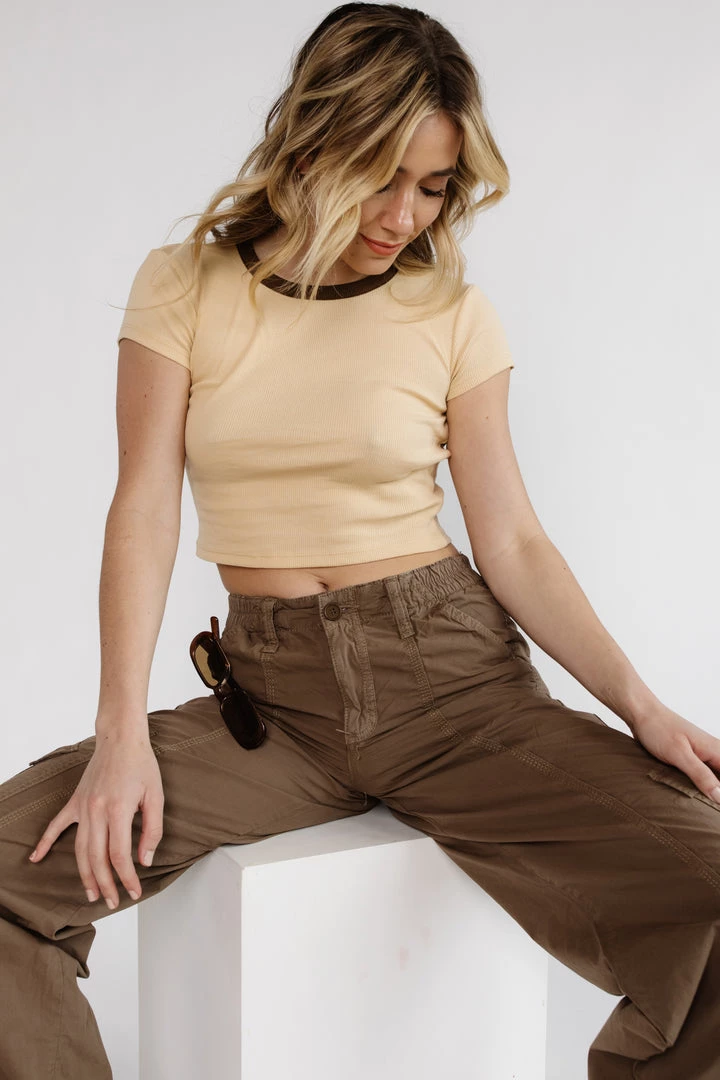 A little ’70s moment for an everyday essential. This baby tee is everything we love, try it with lowrise jeans and platform sandals.