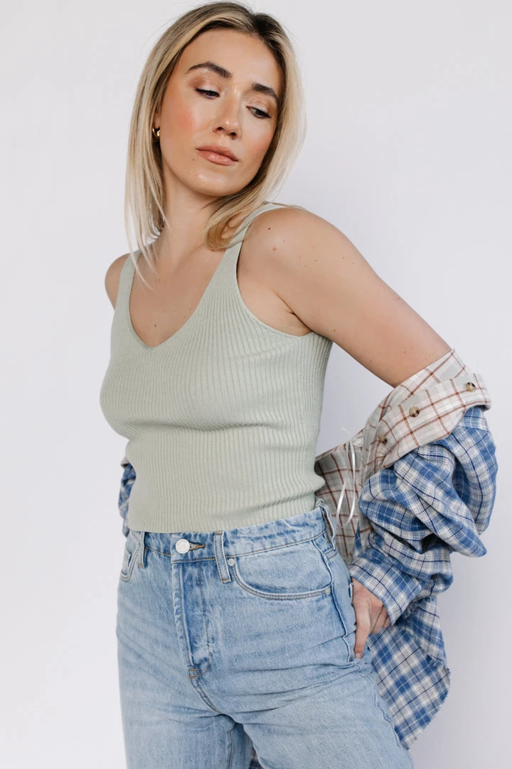 The Karma Ribbed Tank is your summer staple for that easygoing look. Featured with a v-neck and a ribbed material, this tank pairs well with salty air, gold hoops, and your favorite denim.