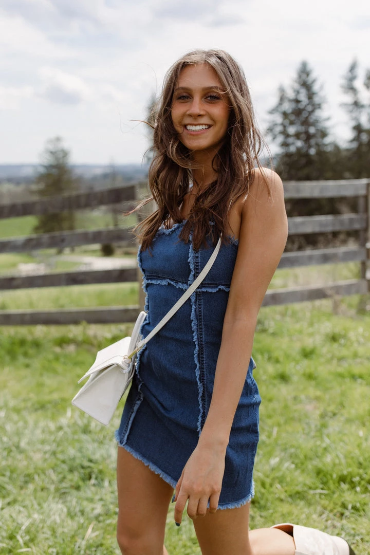 The perfect denim mini for any occasion, whether you’re on Broad St. in Nashville, dancing at Coachella, or on a lunch date around town.
