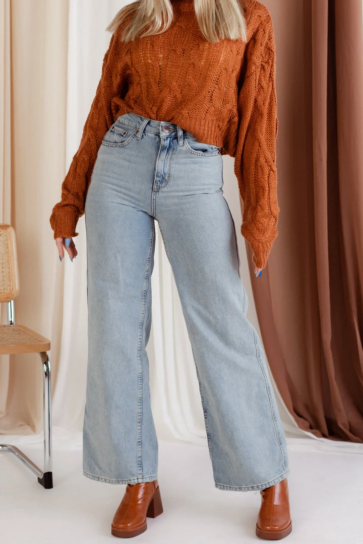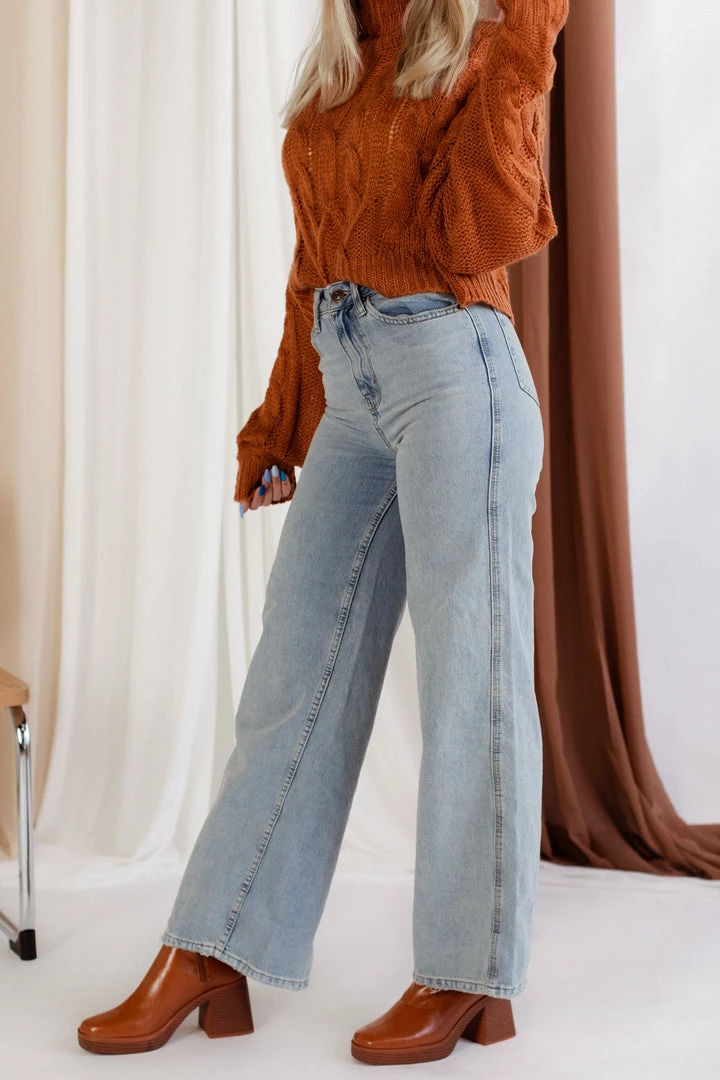 High-waisted jeans from BDG with a washed denim look that’s perfect for fall. Style with baby tee and a puffer for a casual vibe.