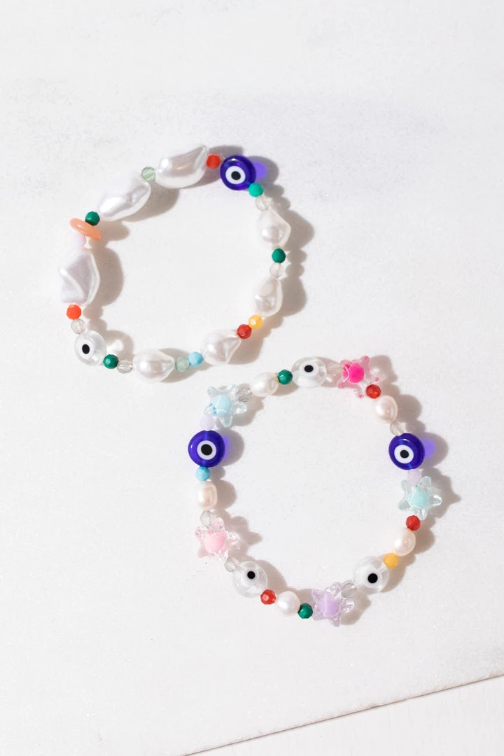 Brightside Callie Evil Eye Pearl Bracelet Set ACCESSORIES
