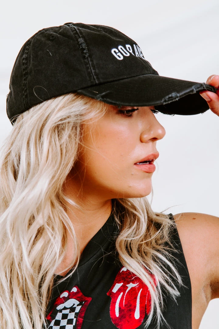Distressed baseball hat featuring “Go Ravens” on the front