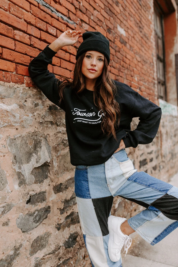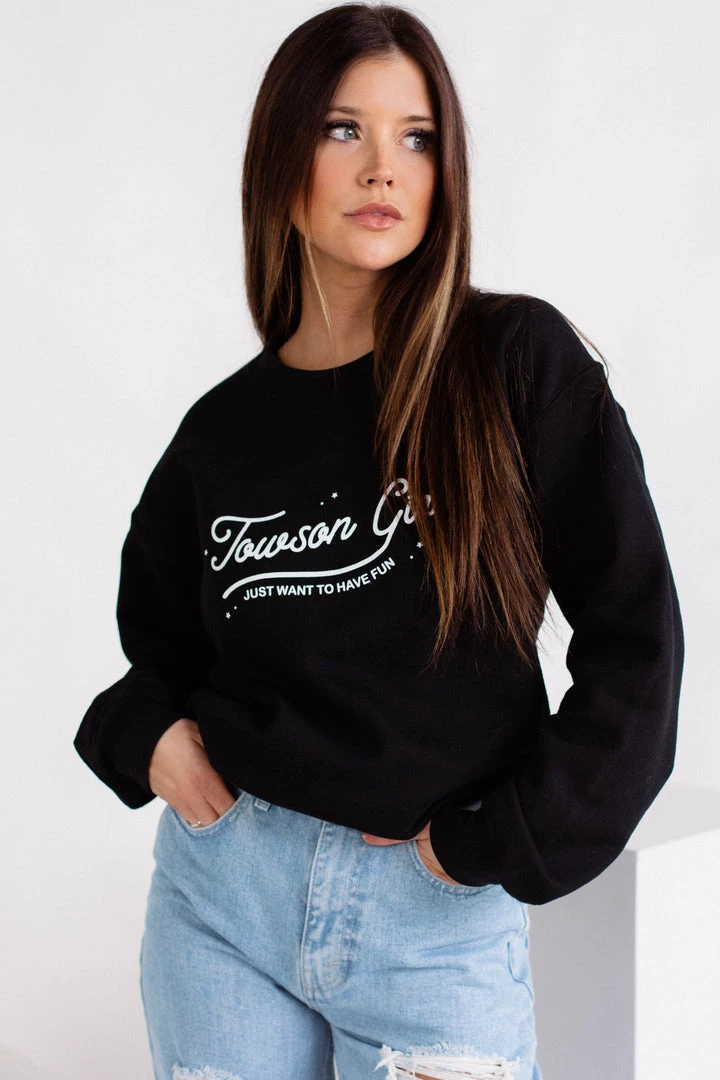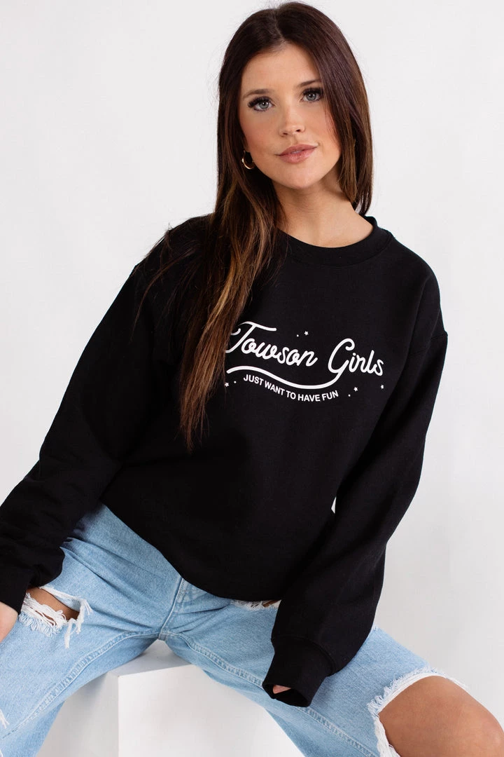 Every Towson girl needs to own our new graphic crew! Get one for you and gift one to your roomie. Wear around relaxed days on campus.