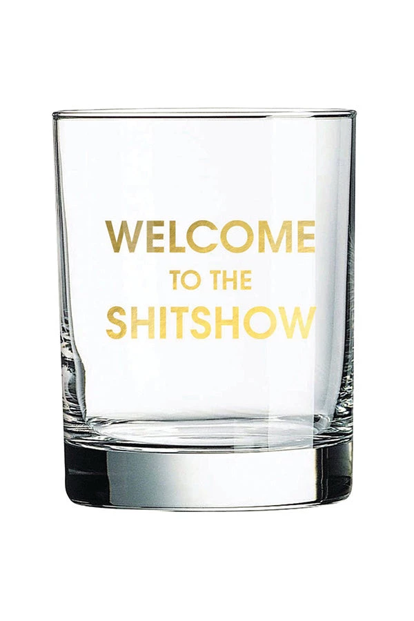 Crush your cocktail in style with our “Welcome To The Shitshow” gold foil rocks glass. Rocks glasses are printed in Los Angeles.