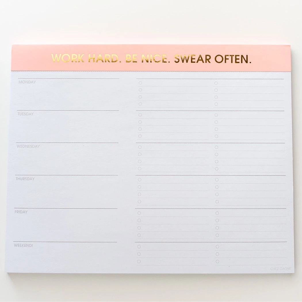 “Work Hard. Be Nice. Swear Often” Weekly Planner Pad