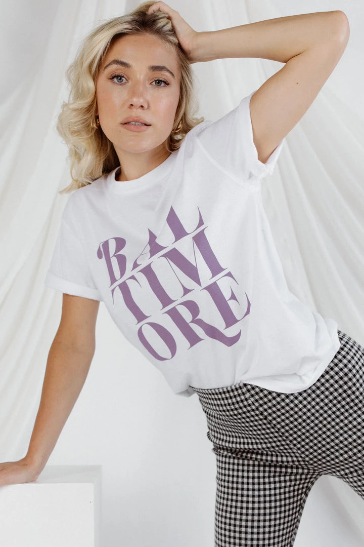 Our new Baltimore Graphic tee is here, just in time for game day! Represent charm city with this cute design and super soft tee.