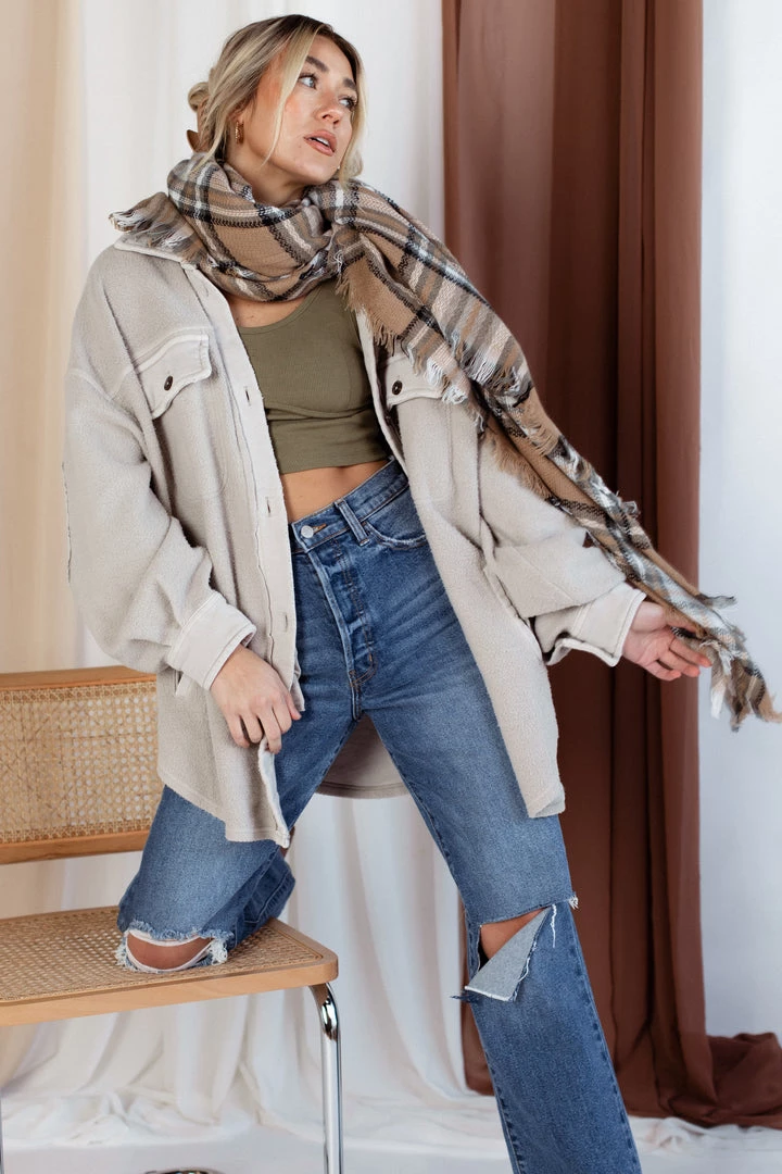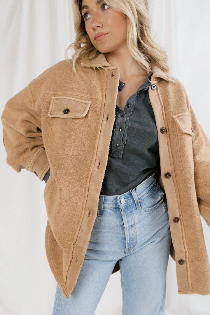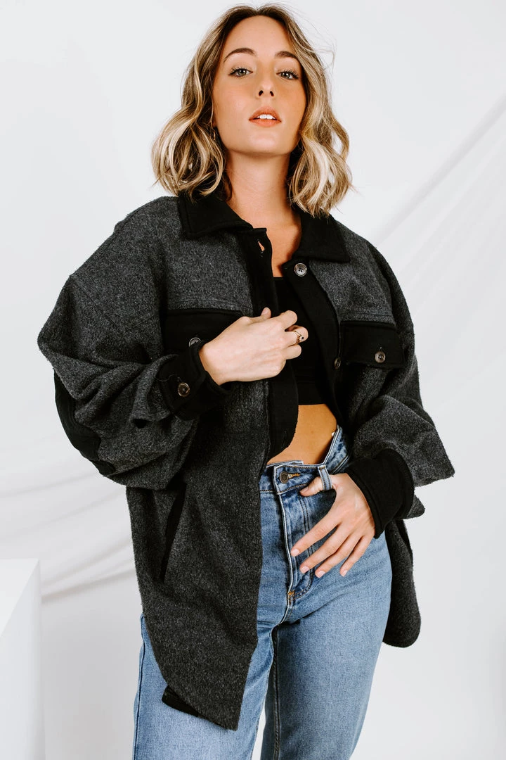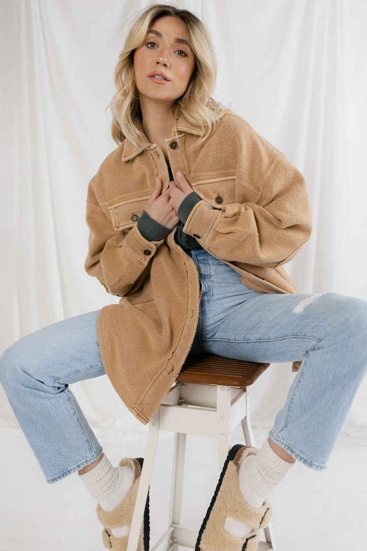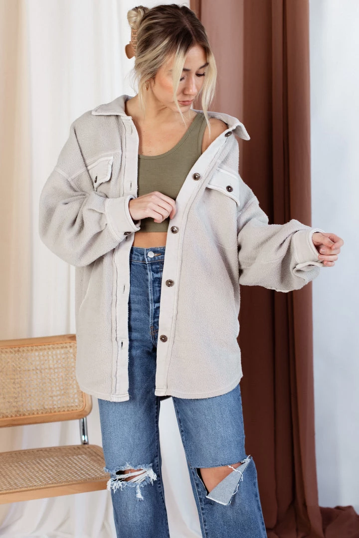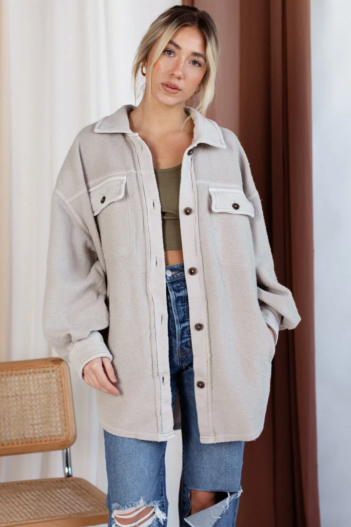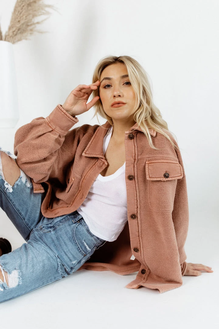 The Free People Ruby Jacket is our new favorite jacket. This piece is featured in a so-soft shacket style with an oversized fit, cool-collared neckline, and wear-over-everything ease.