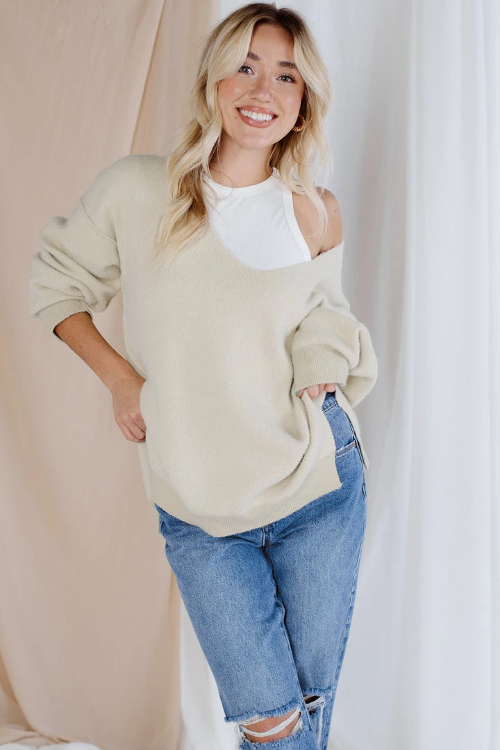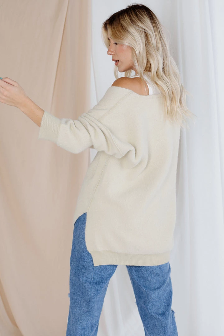 The definition of the perfect sweater, this pullover is great for layering and cozy days. Style with a tee or turtleneck underneath and birks with socks!