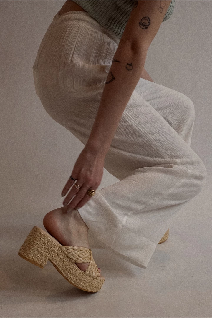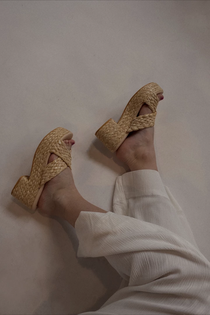 - Raffia upper.