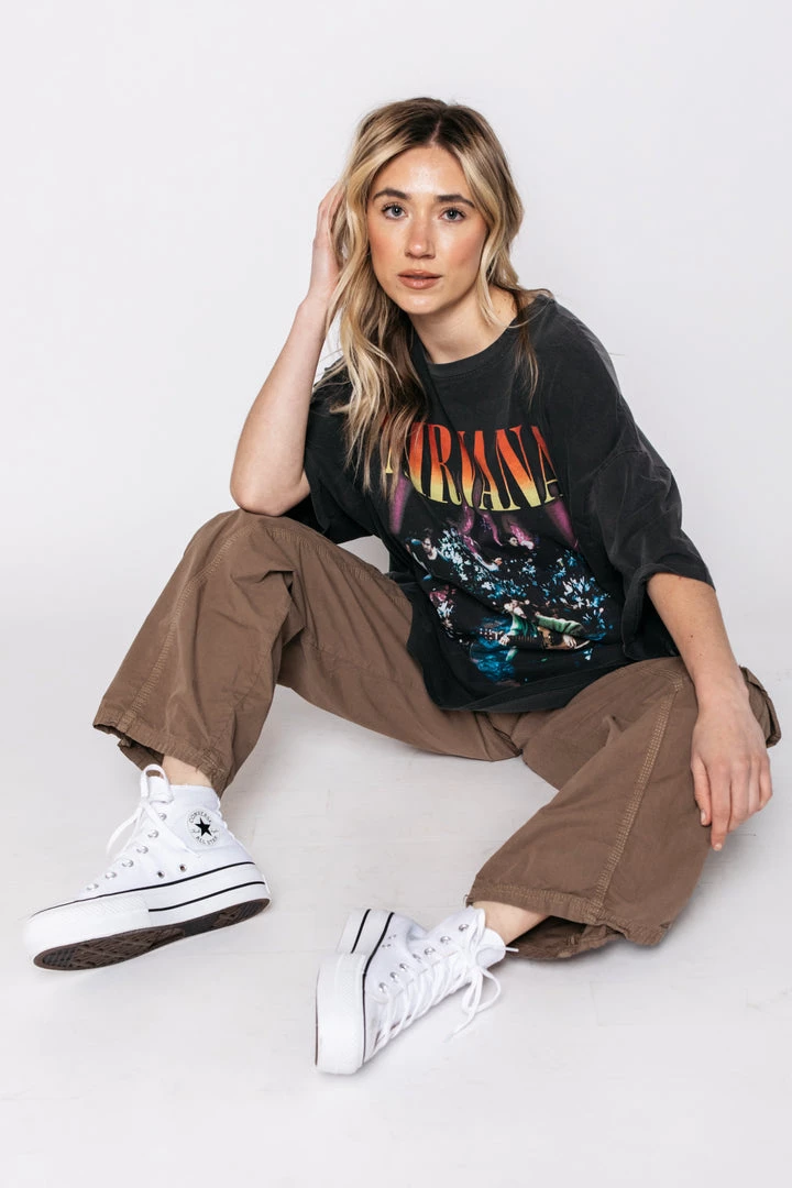 Emerging on a high note, Nirvana’s 1991 album, Nevermind, sold over 30 million copies and woke up Generation X forever. We love the Daydreamer Nirvana Unplugged OS Tee paired with cut-off shorts, chunky sneakers and lots of jewelry.