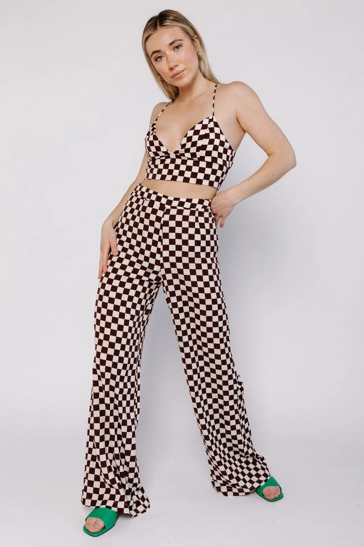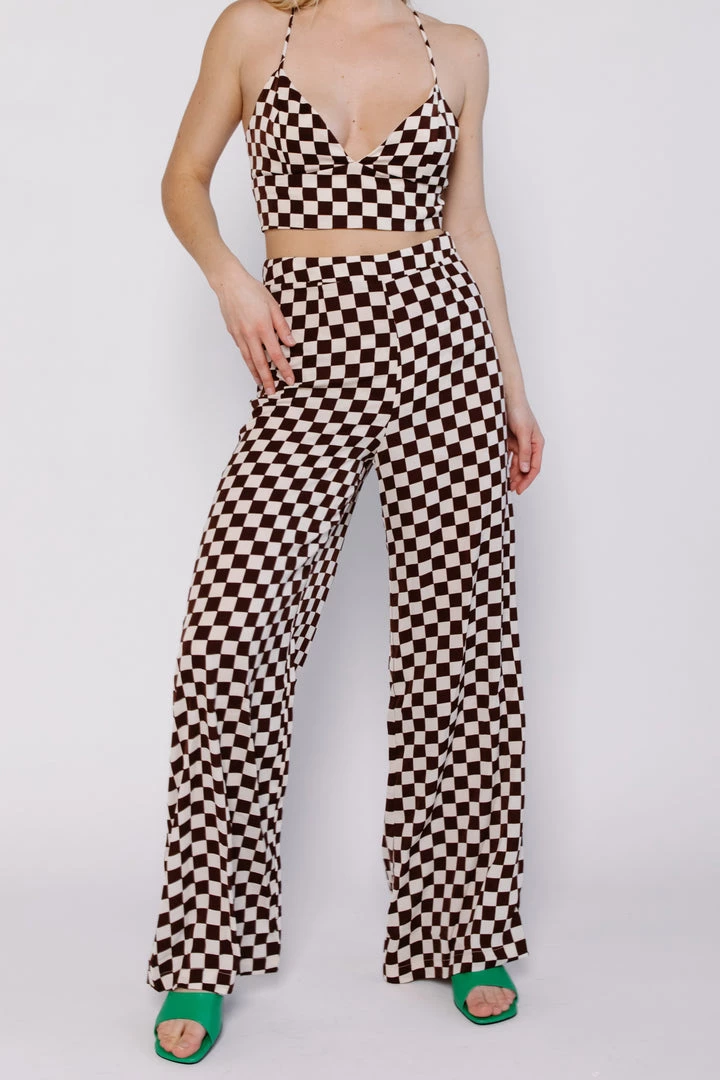 These silky Check Trousers have a chokehold on us.. these babies master the checkered print trend. Style with a baby tee or crop top and thing sandals.