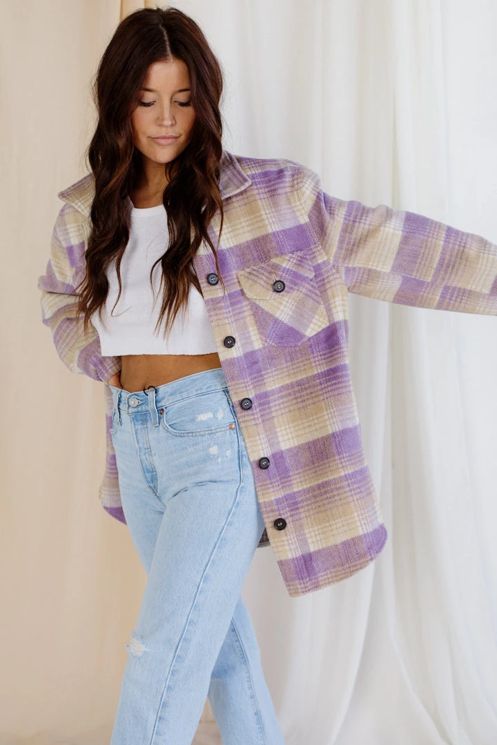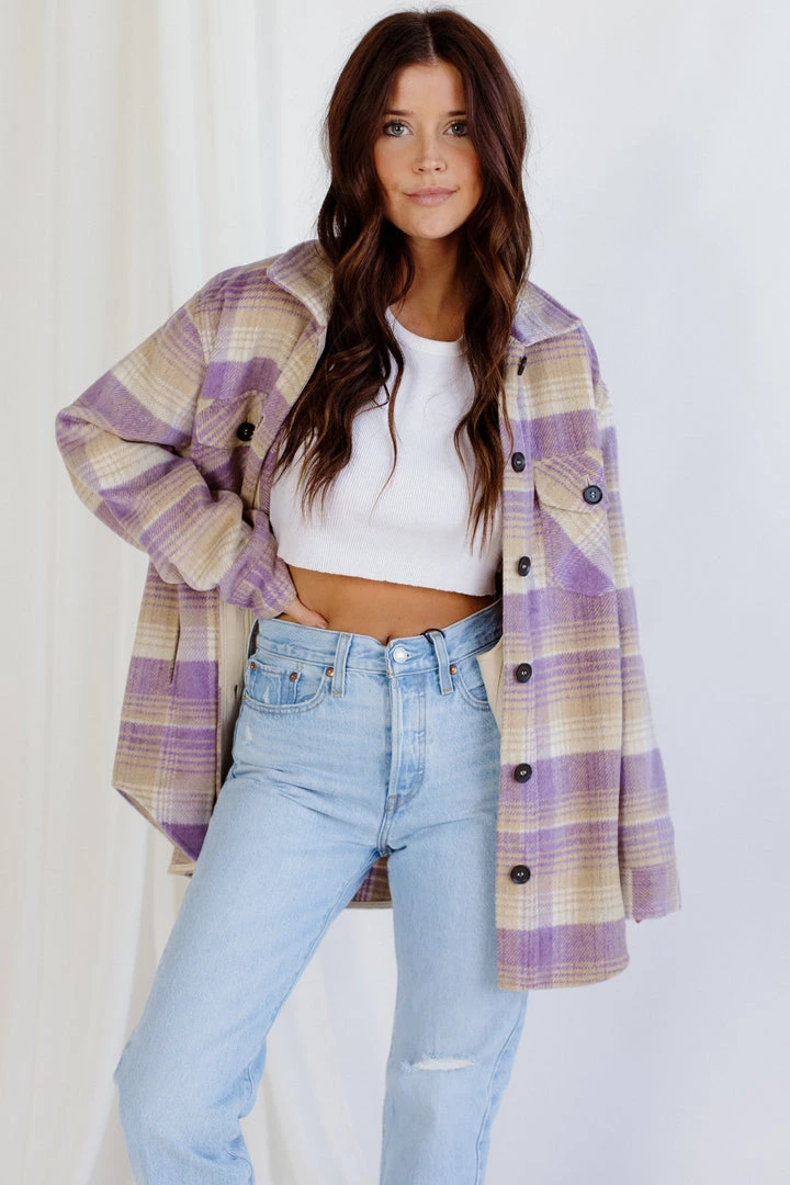 How fun is this pop of color in this Bowie Plaid Shacket? A staple for the fall season with anything and everything.