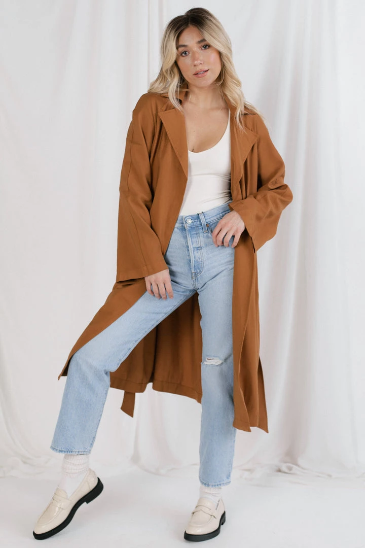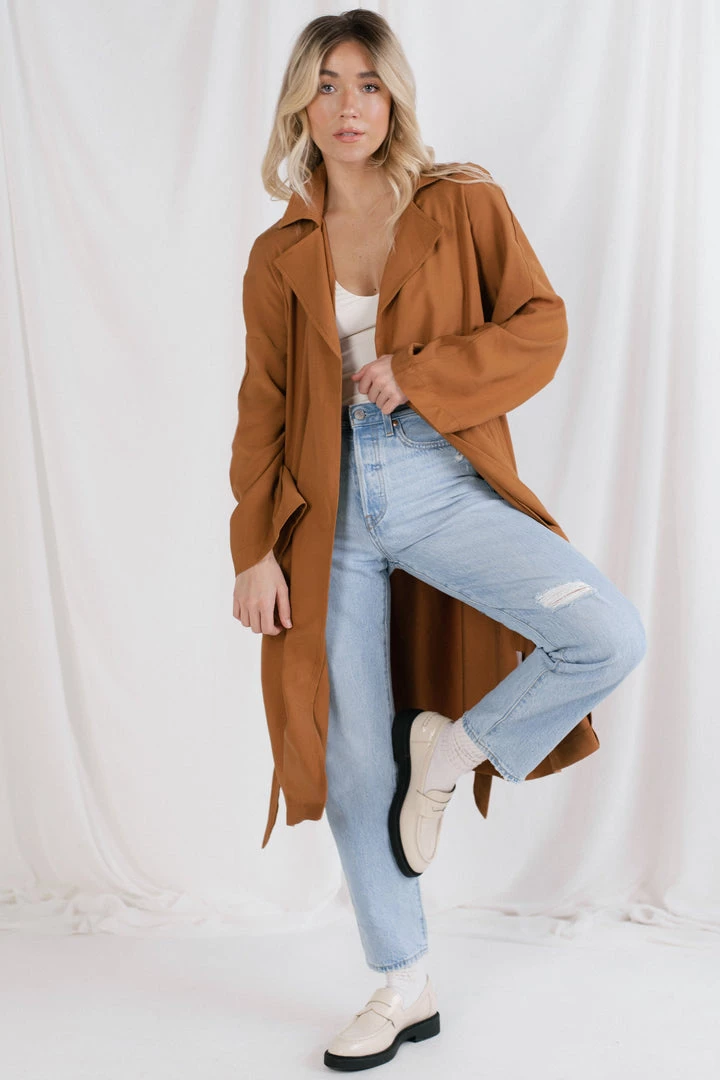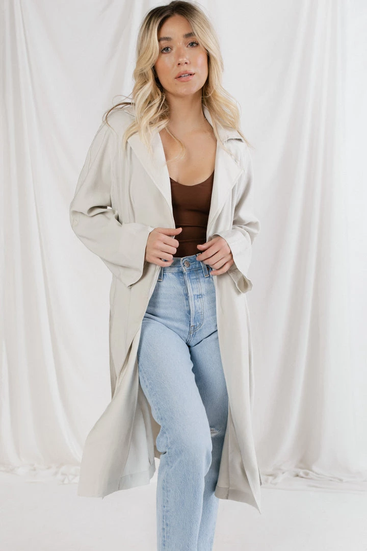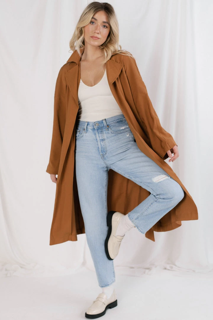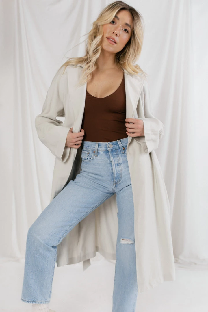 Making your way downtown in the perfect trench. Your new go-to for lazy days when you need a quick outfit on the go.
