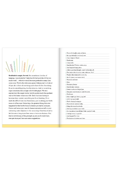 Gratitude is magic, but gratitude journals can be kinda cheesy (and feel like work). This not-really-a- journal is un-cheesy and super easy: Just think of one thing you’re thankful for each day—or whenever!