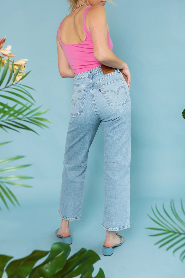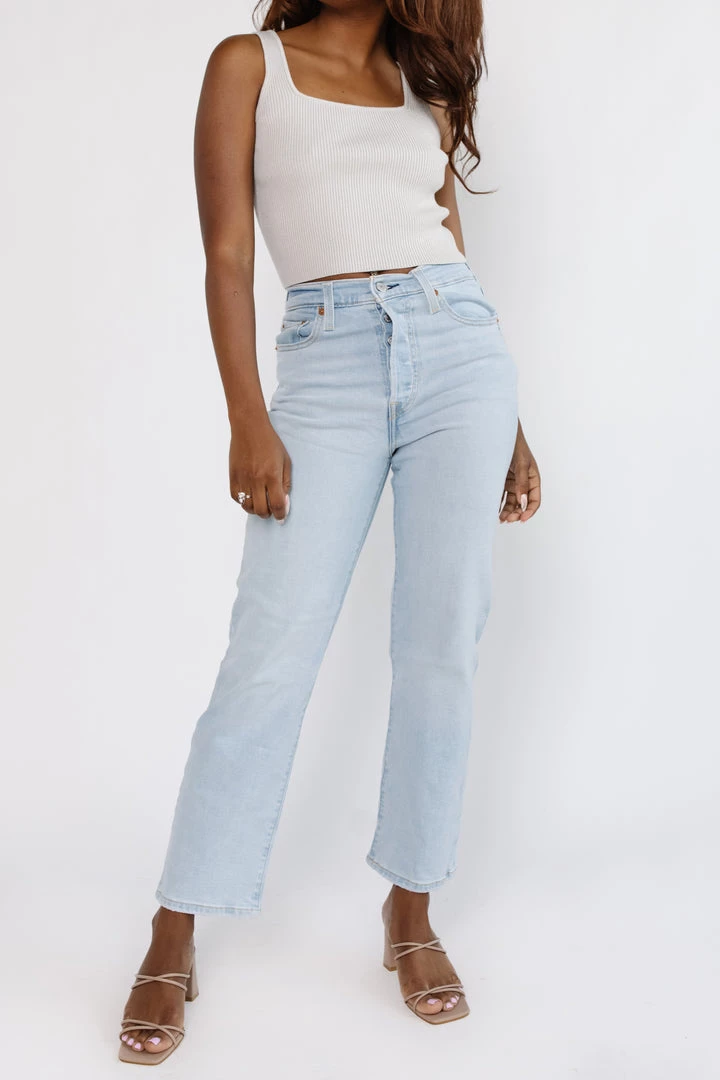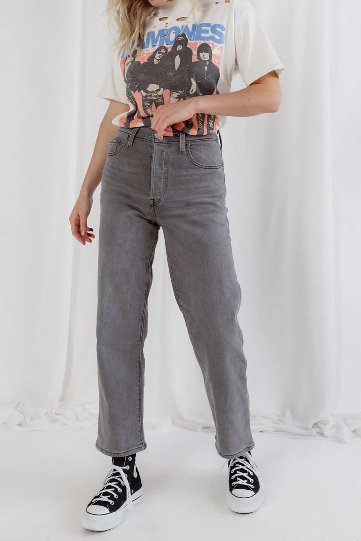 The highest high-rise jean from Levi’s in a classic straight-leg silhouette. Rigid denim offers a relaxed fit through the hips down to the ankle-length hem. Finished with 5-pocket detailing and button fly.