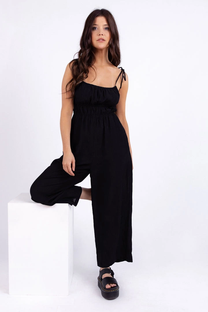 Feature in a wide leg with side slits and tied straps, the Moon River Jumpsuit is the best all-in-one outfit staple to have. You can wear it to work with a jacket and then switch it up for cocktails with the girls. The possibilities are endless. Pair with your fav colorful bag.
