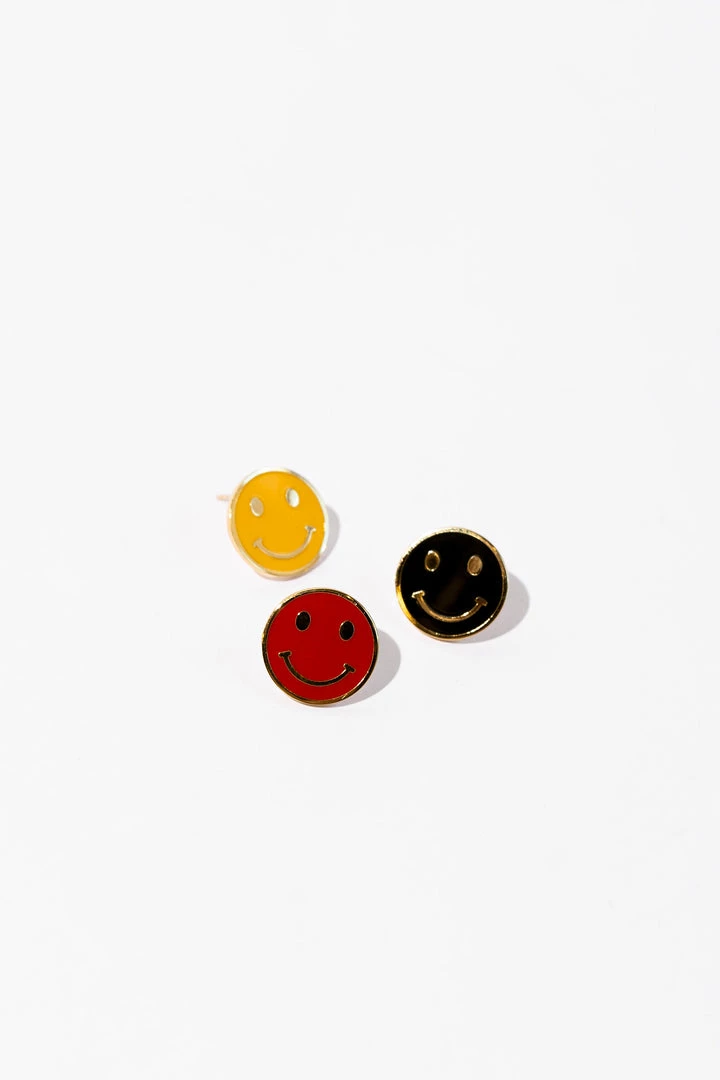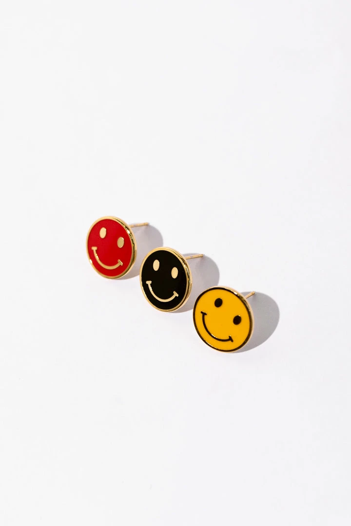 Cheer up with these happy face stud earrings. Wear for chill days in a cute top and your fav denim. Includes 1 pair.