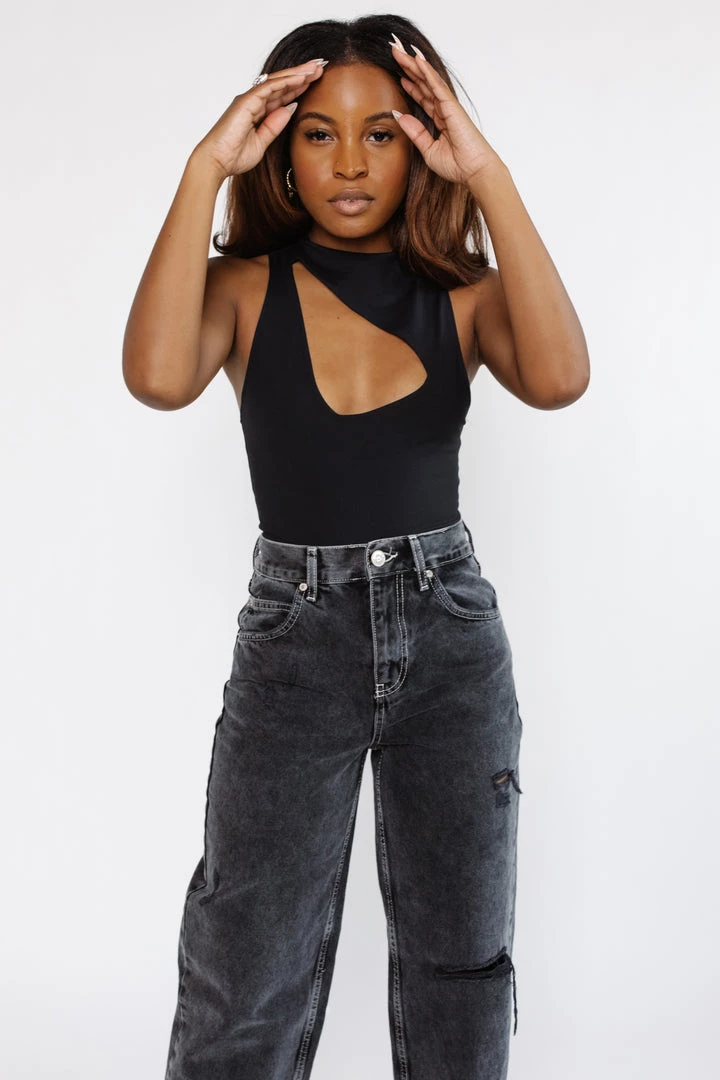 Sultry with a touch of edge, this mock-neck bodysuit features front cutout detailing and racerback silhouette for a slim, always tucked-in design. So comfortable and flattering, you’ll want to wear the Free People Keep It Going Bodysuit all night long.
