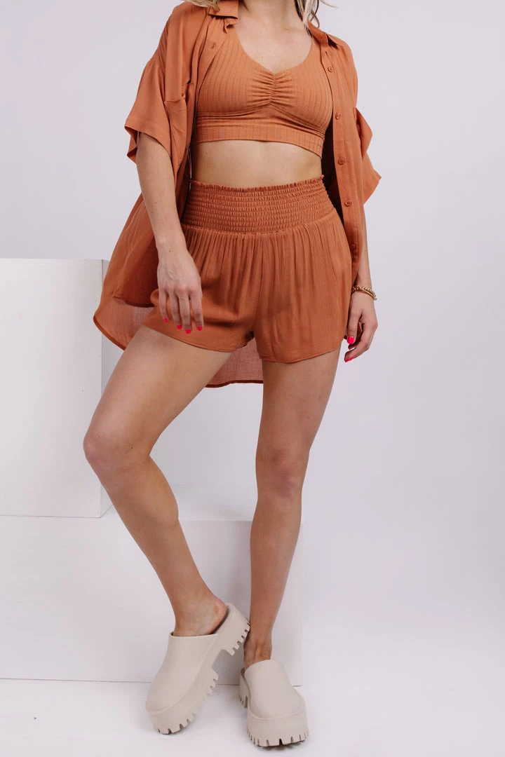 A heatwave is no match for the Z Supply Dawn Crinkle Short! This short has a flirty ruffle edge and elastic waistband with shirring. It makes a must-have outfit with the Z Supply Hazey Rib Tank Bra and the Z Supple Clearwater Crinkle Shirt!