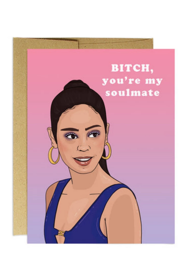 Printed on matte white cardstock & comes with kraft envelope with cellophane sleeve