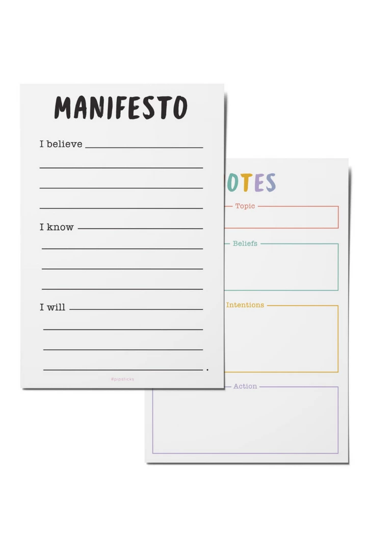 Make your purpose known with these cool Manifesto notecards. The perfect blank canvas to record your beliefs, intentions and actions about any topic you like!