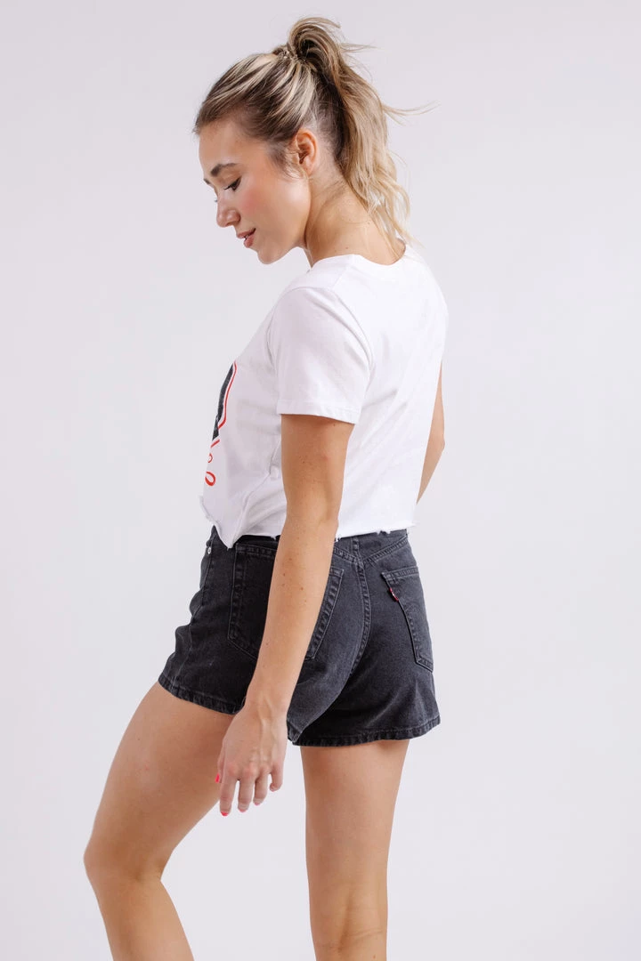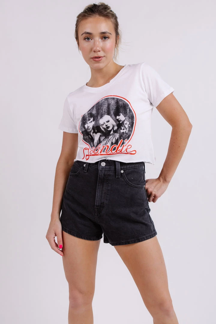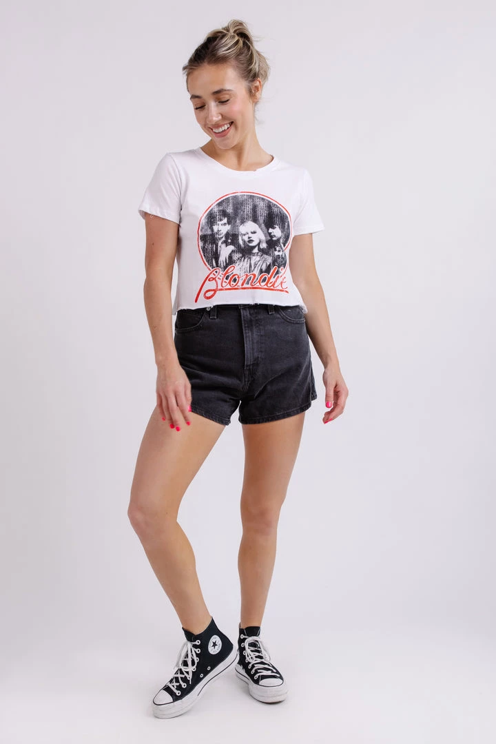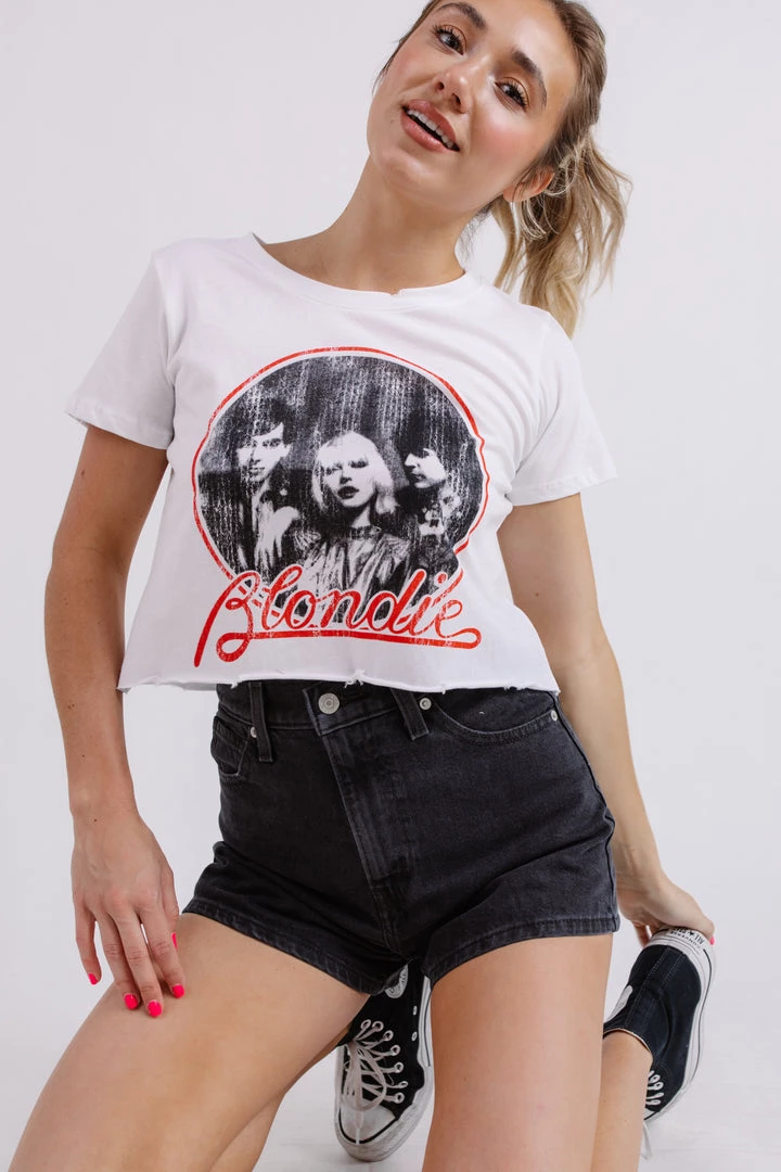 Who doesn’t love a band tee. The Blondie Circle Crop Tee takes the classic band tee up a notch with a cropped fit and distressed detail. Style with a pair of straight leg jeans, a claw clip, and a shoulder bag to be comfortable but stylish for any occasion.