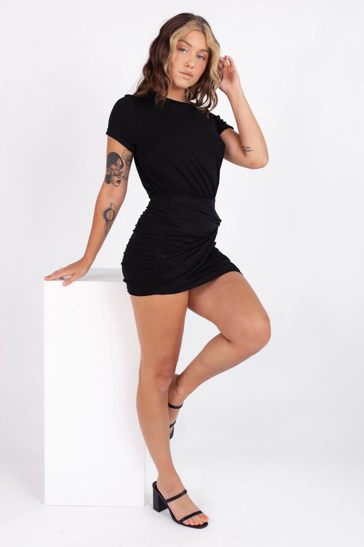 Perfect for a summer date night or just looking cute while out and about, the Brooke Mini Dress is the easy pick. Featured in a mini length with tie-detailing and rouching, we love styling this pick with lots of simple gold jewelry. You can’t miss.