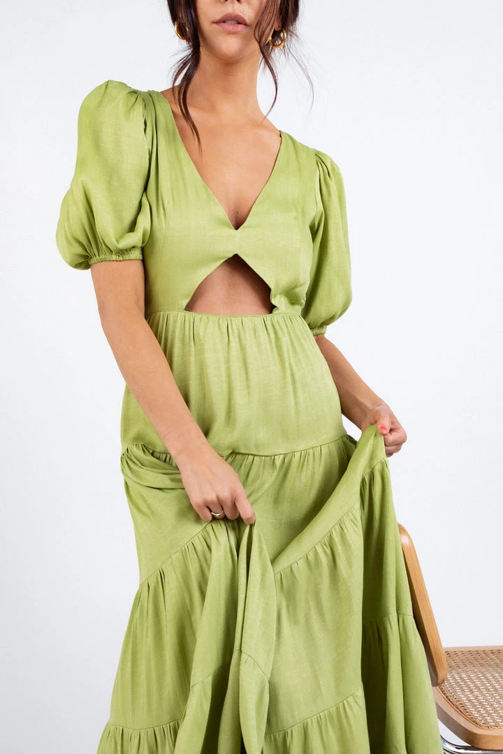 The Cedros Maxi Dress is the perfect dress to wear on a vacation date night. Delicately detailed with small puff sleeves, cut-outs and a maxi length, this item pairs perfectly with your favorite jewelry and sandals for an effortless look.
