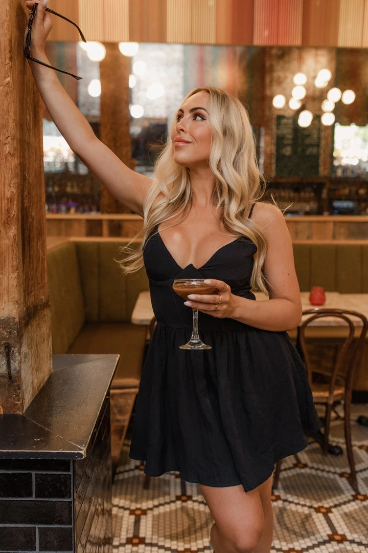 The By My Side Mini Dress is the perfect dress to be spotted out and about in. The corset style top adds definition to your body without overdoing it! Dress it up with some heels and gold jewelry or dress it down with a jean jacket for a day on the town.