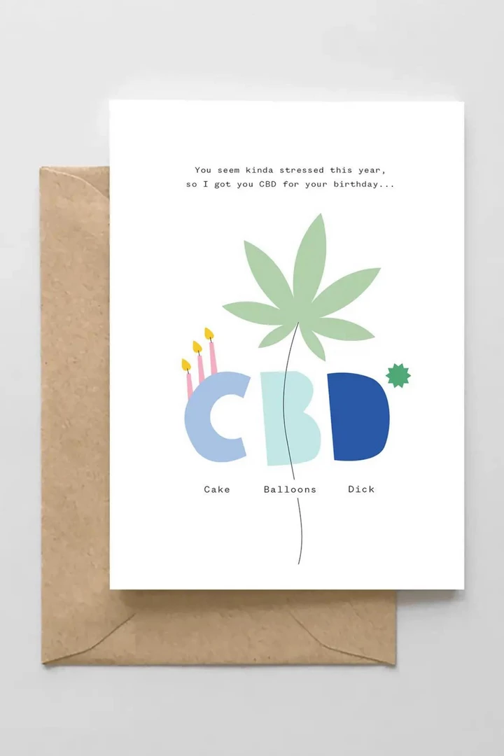 You seem kinda stressed this year, so I got you CBD for your birthday. Size: A6. Blank on the inside. Kraft brown envelope included.