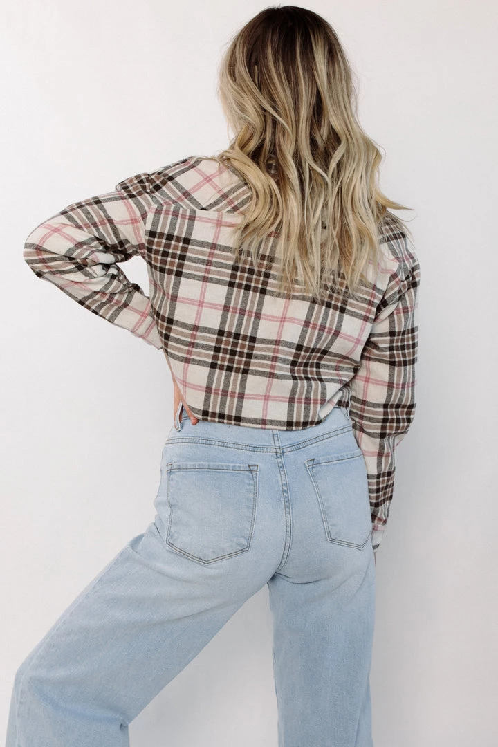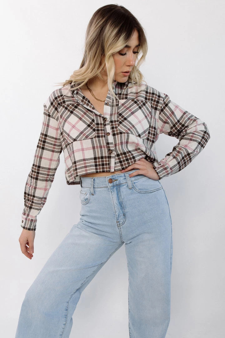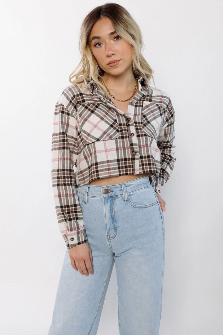 Your new favorite flannel. Soft flannel button-down shirt cut in a loose, boxy fit that’s cropped to the waist.