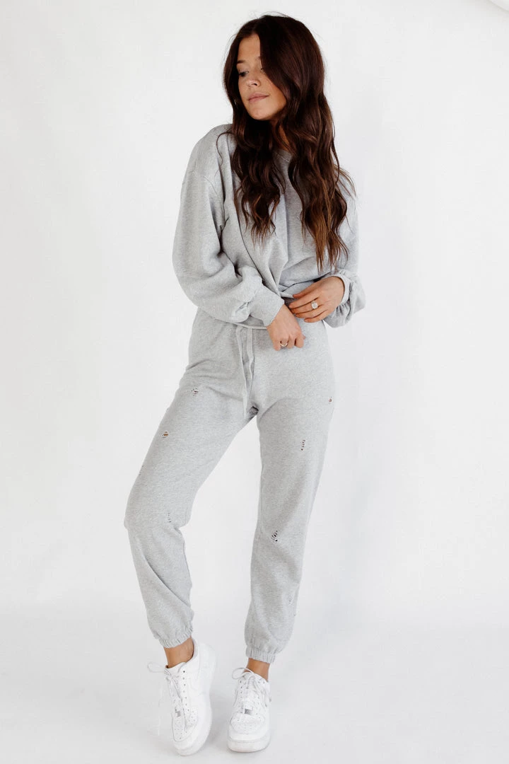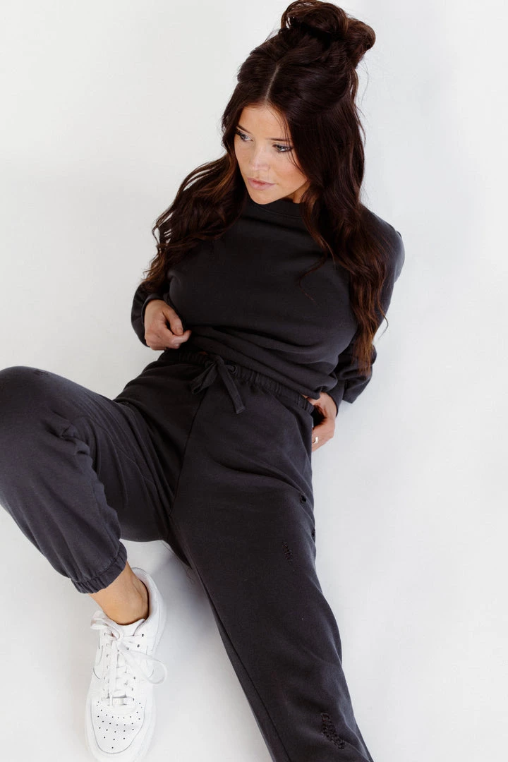 Distressed gives that worn-in favorite feel you can’t get enough of! The Allie Distressed Sweatshirt is designed with a casual edge, relaxed fit and distressing throughout. Make it a set with the matching jogger.