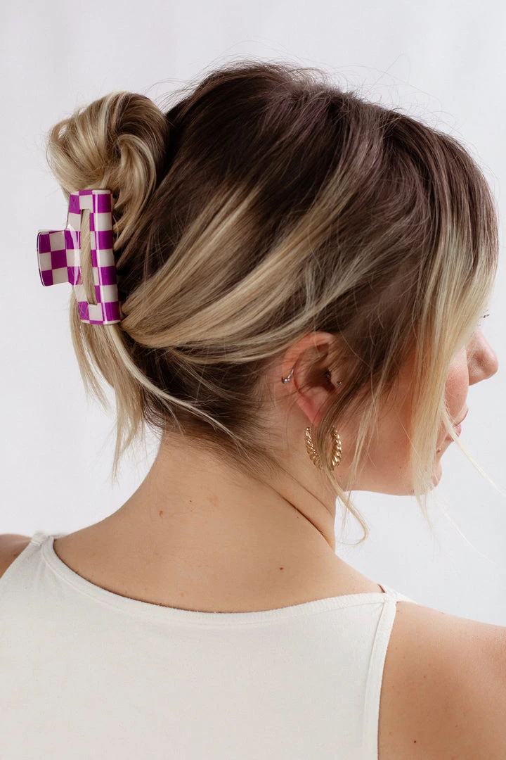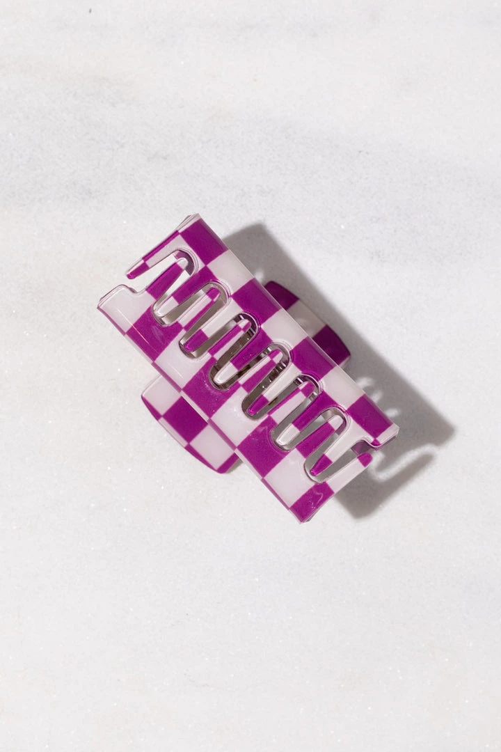 SKU: wall-to-wall-6658296086594 Categories: ACCESSORIES, HAIR Tags: Black, Check, Checkered, Claw clip, Hair clip, Purple