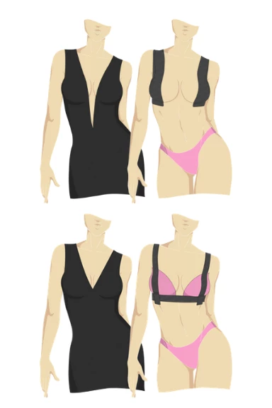 2) Roughly measure out and precut 10-12 inch lengths of Nueboo Tape depending on the style of taping you are doing and the size of your bust. We suggest you hold the tape up in the position it will be used to get an idea of how long the tape should be. Keep in mind the tape stretches!