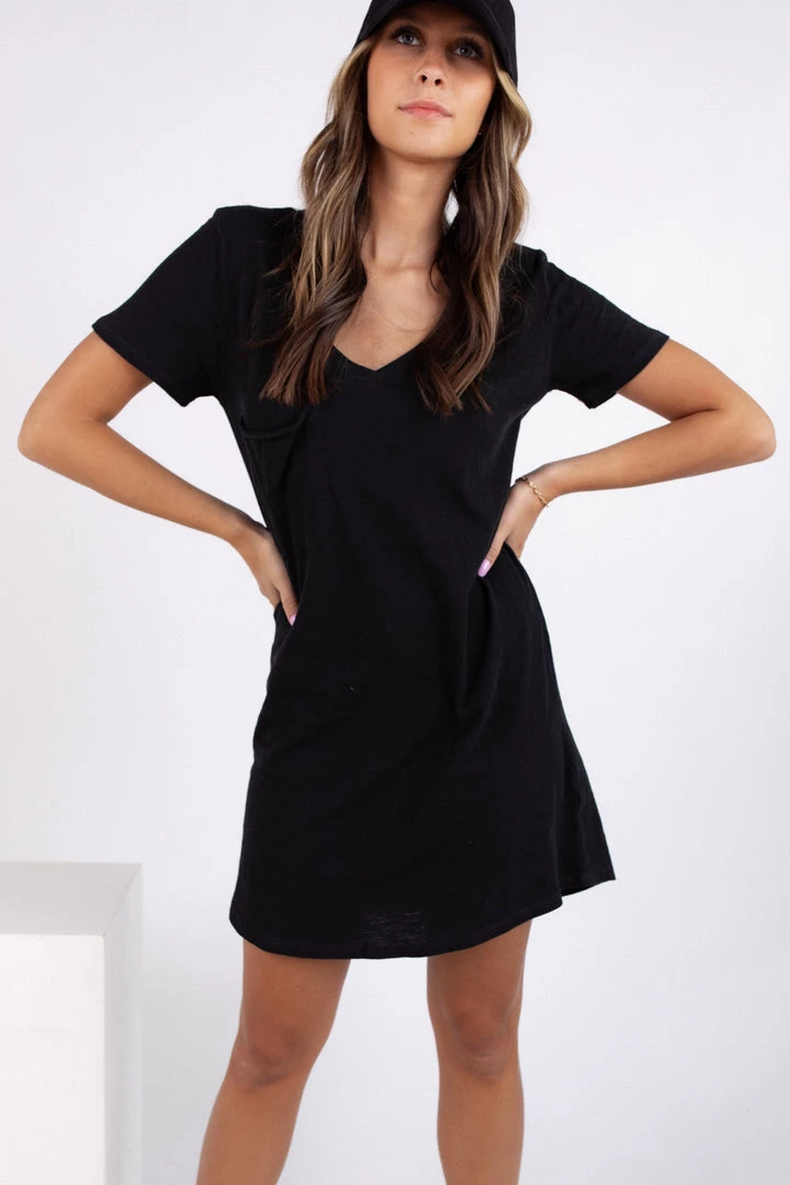 What can be better than your favorite tee? The tee turned into a dress! The Z Supply Pocket Tee Dress is the perfect dress to throw on for your daily errands. The relaxed, v-neck design has the signature slouch pocket and rounded hem you love. Add your favorite hat and sandals for the ultimate cute and comfy fit.
